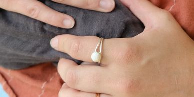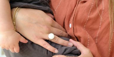 8x8 mm oval ring with double bezel made with a breast milk. Option to add gold leafing.