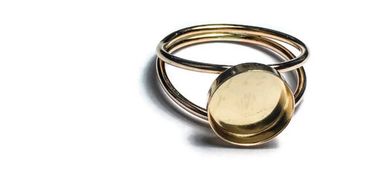 Double band gold circle 8mm bezel. This is a fitted ring and will be ordered based on your ring size. Can request different size bezel or metal.