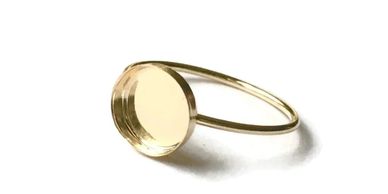 Gold circle 8mm bezel. This is a fitted ring and will be ordered based on your ring size. Can request different size bezel or metal.