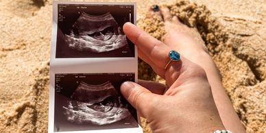 This is a 8x10mm gold oval. Pregnancy test cap or breast milk options. This specific piece also includes the pink lines from the pregnancy test.