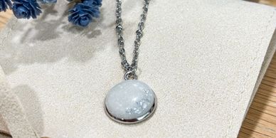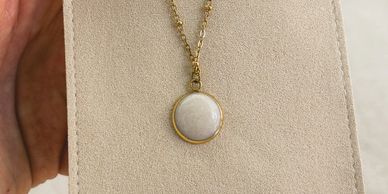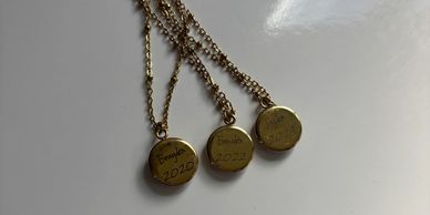 We have the option to engrave the back of your necklaces if you’d like to put names or dates.